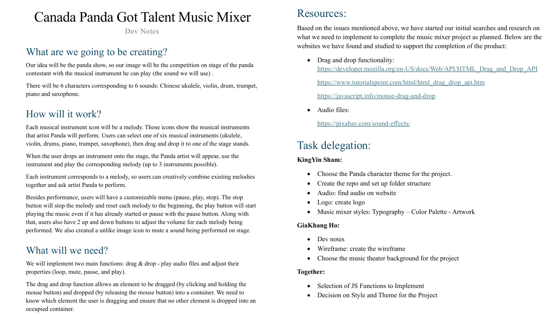 To begin the process, I created wireframes and development notes to outline the structure and functionality of the interactive music mixer, which helped clarify the steps needed to build the webpage. I then designed the page, sourcing appropriate images and icons to enhance the user experience. Finally, I developed the webpage using CSS for styling and JavaScript to implement the interactive elements, ensuring the functionality of the draggable soundtracks and sound playback.