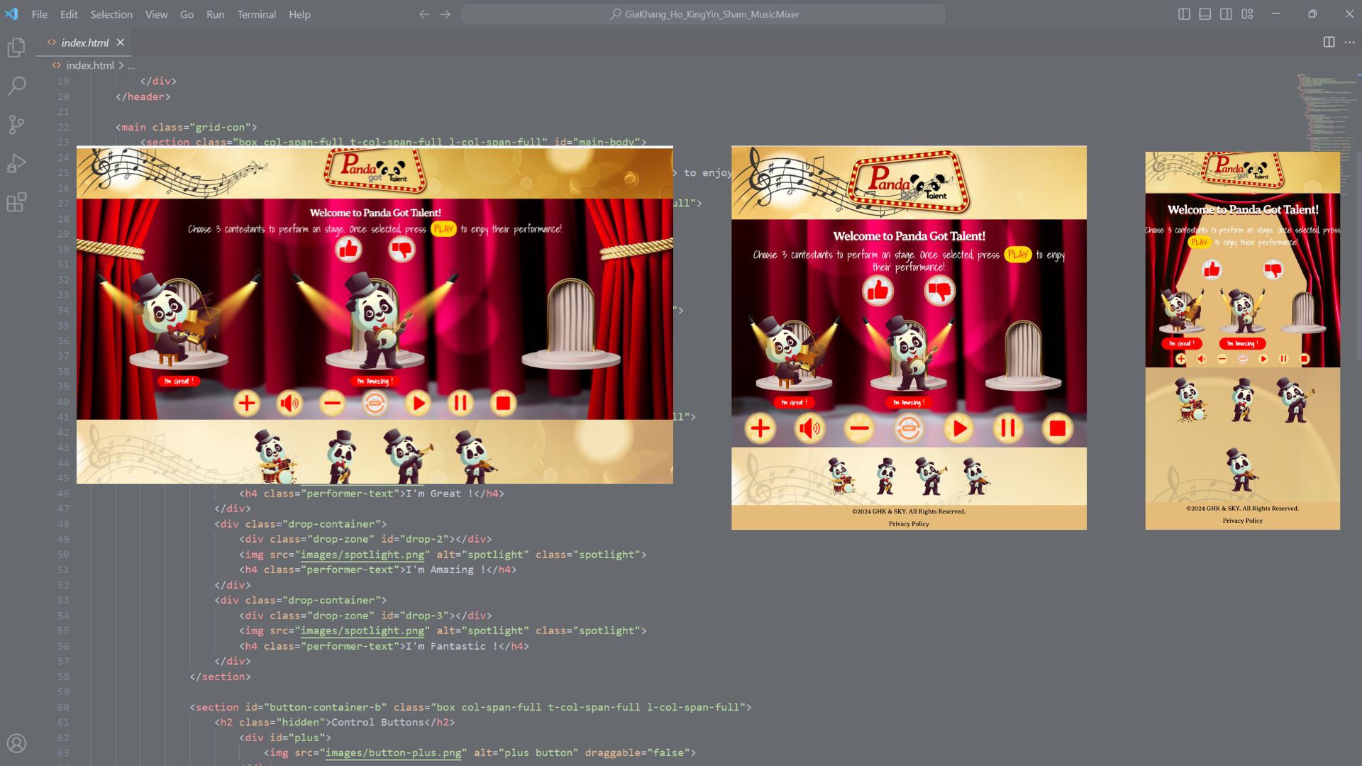 The main challenge of the Music Mixer project was deciding on a topic and selecting the right elements to include, as well as figuring out how to structure the interactive features. Additionally, since this is my first time working with JavaScript, I had to learn how to use it to make the elements draggable and enable sound functionality, which added complexity to the project.